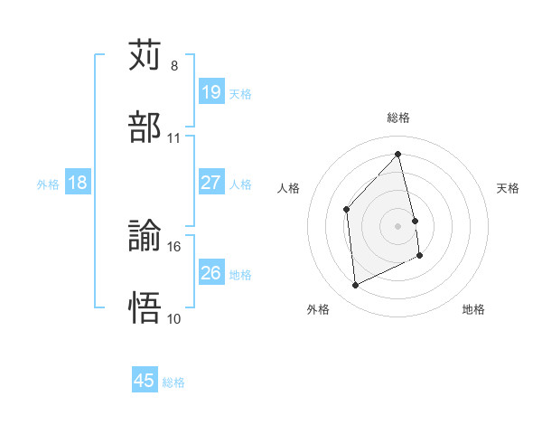 苅部 諭悟さんの総格は45画の4点!