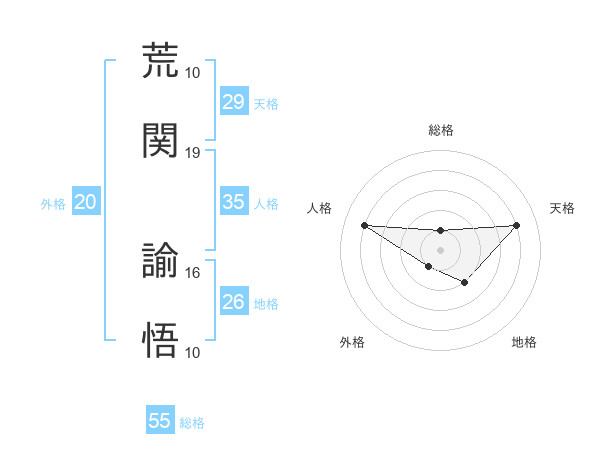 荒関 諭悟さんを姓名の画数から五運を鑑定