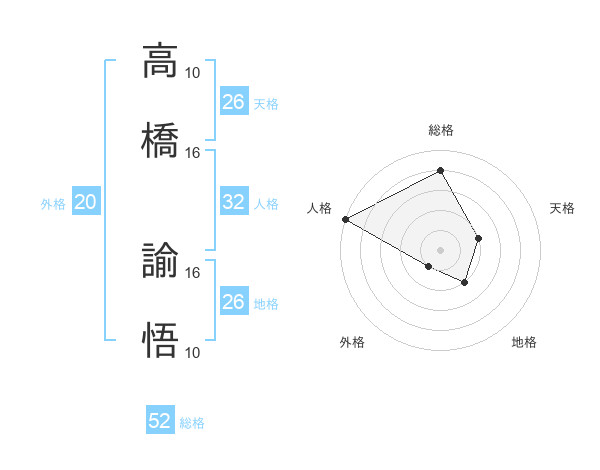高橋 諭悟さんを姓名の画数から五運を鑑定