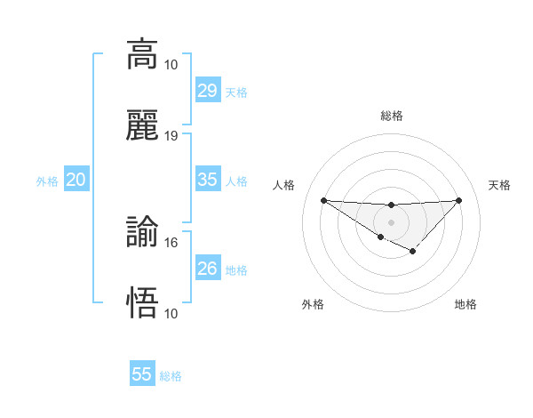 高麗 諭悟さんの総格は55画の1点!