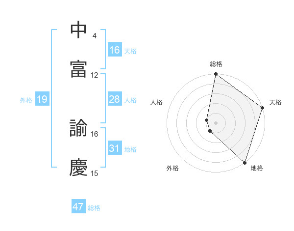 中富 諭慶さんの総格は47画の5点!