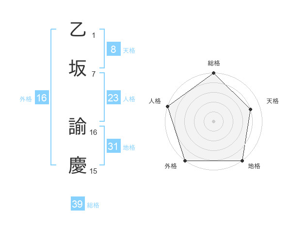 乙坂 諭慶さんの総格は39画の5点!