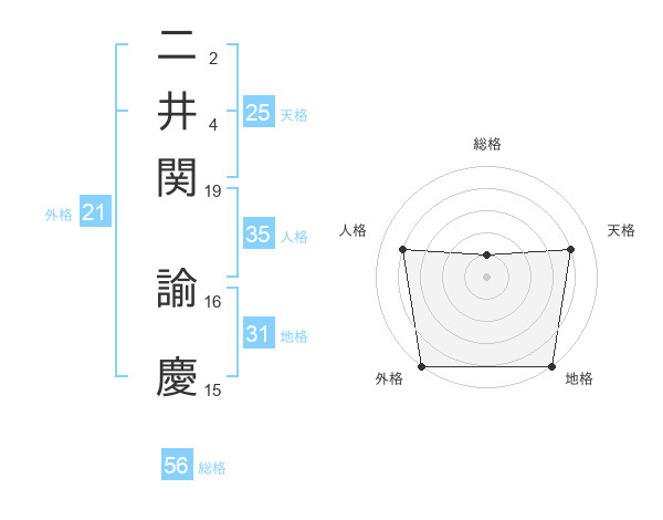 二井関 諭慶さんを姓名の画数から五運を鑑定