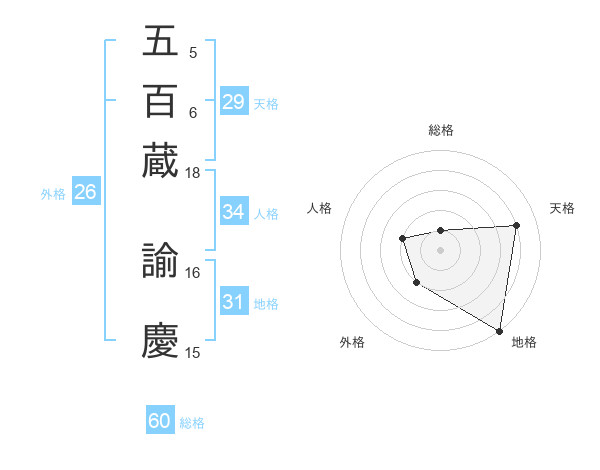 五百蔵 諭慶さんの総格は60画の1点!