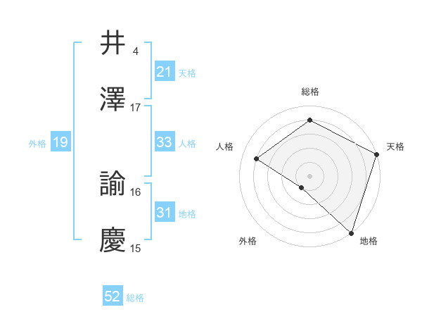 井澤 諭慶さんを姓名の画数から五運を鑑定