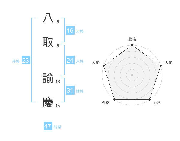 八取 諭慶さんを姓名の画数から五運を鑑定
