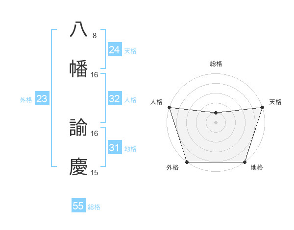 八幡 諭慶さんを姓名の画数から五運を鑑定