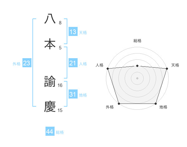 八本 諭慶さんを姓名の画数から五運を鑑定