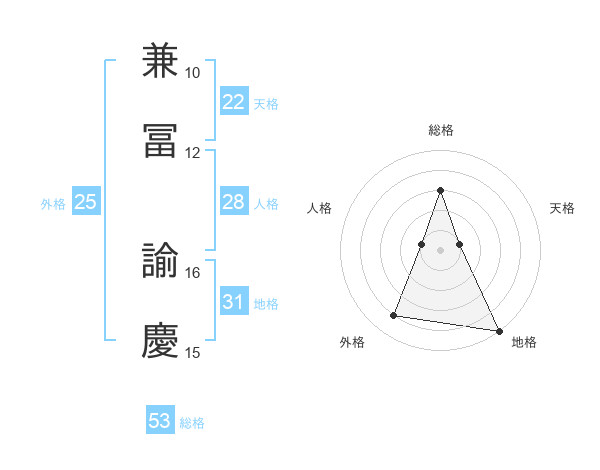 兼冨 諭慶さんの総格は53画の3点!
