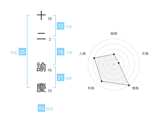 十二 諭慶さんを姓名の画数から五運を鑑定