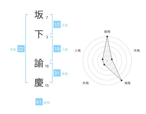 坂下 諭慶さんを姓名の画数から五運を鑑定