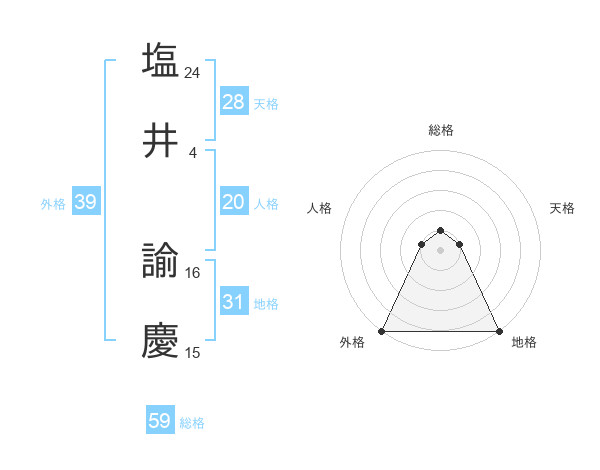 塩井 諭慶さんの総格は59画の1点!