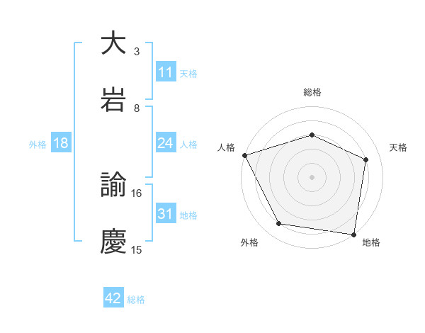 大岩 諭慶さんを姓名の画数から五運を鑑定