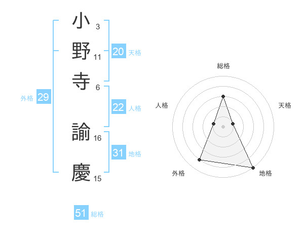 小野寺 諭慶さんの総格は51画の3点!