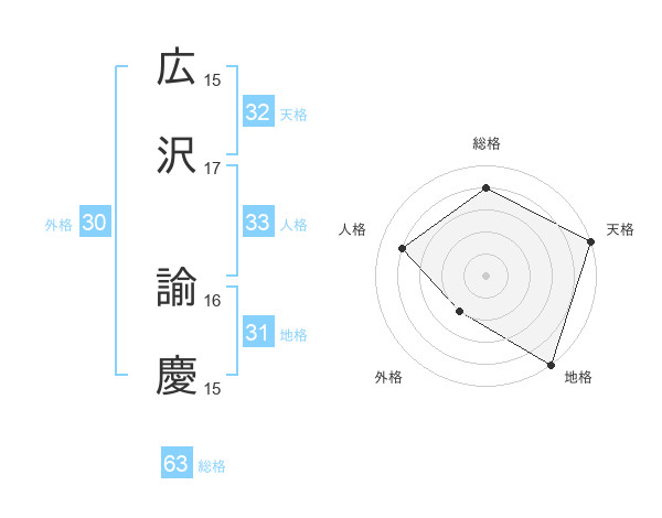 広沢 諭慶さんを姓名の画数から五運を鑑定