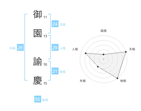 御園 諭慶さんの総格は55画の1点!