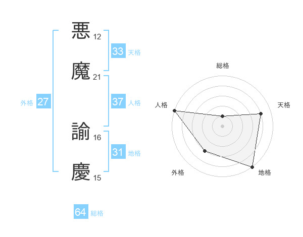 悪魔 諭慶さんを姓名の画数から五運を鑑定