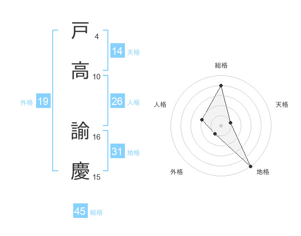 戸高 諭慶さんの総格は45画の4点!