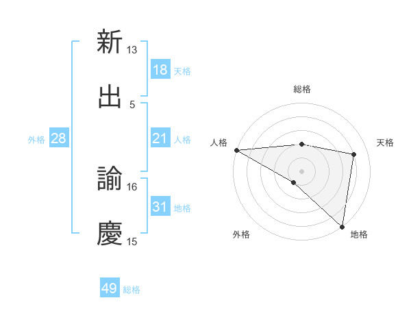 新出 諭慶さんの人格は21画の5点!