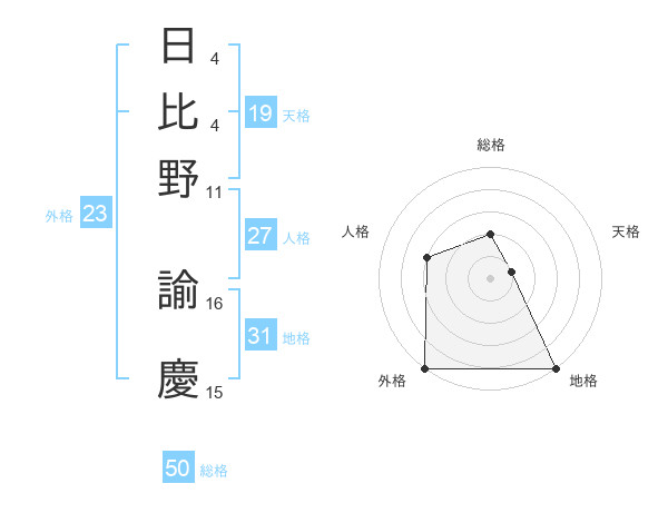 日比野 諭慶さんの総格は50画の2点!