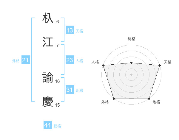 杁江 諭慶さんを姓名の画数から五運を鑑定