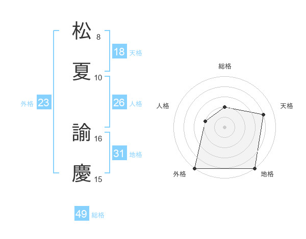 松夏 諭慶さんを姓名の画数から五運を鑑定