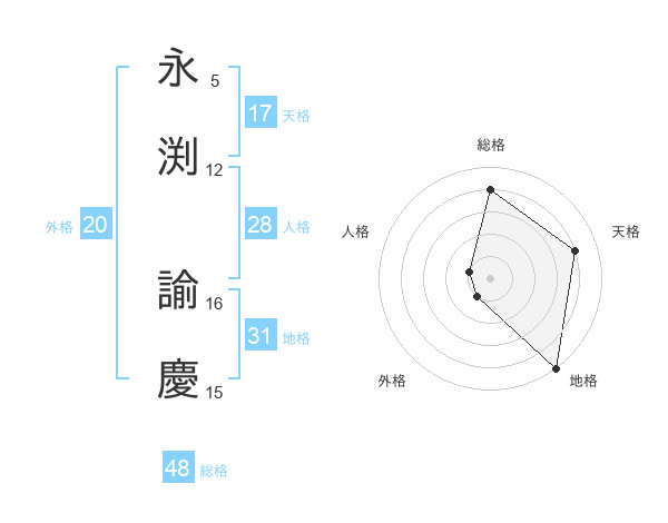 永渕 諭慶さんを姓名の画数から五運を鑑定