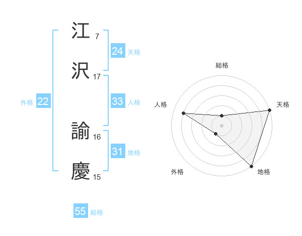 江沢 諭慶さんの天格は24画の5点!