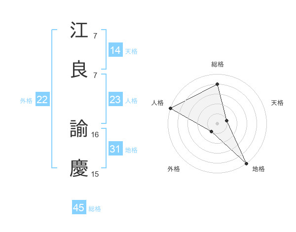 江良 諭慶さんの総格は45画の4点!