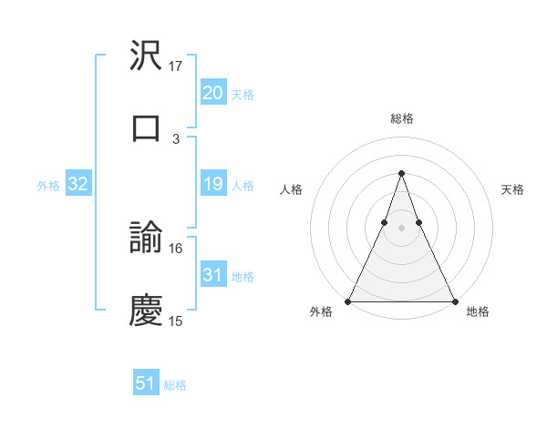 沢口 諭慶さんの総格は51画の3点!