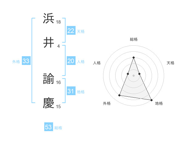 浜井 諭慶さんを姓名の画数から五運を鑑定