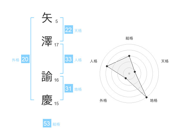 矢澤 諭慶さんの天格は22画の1点!