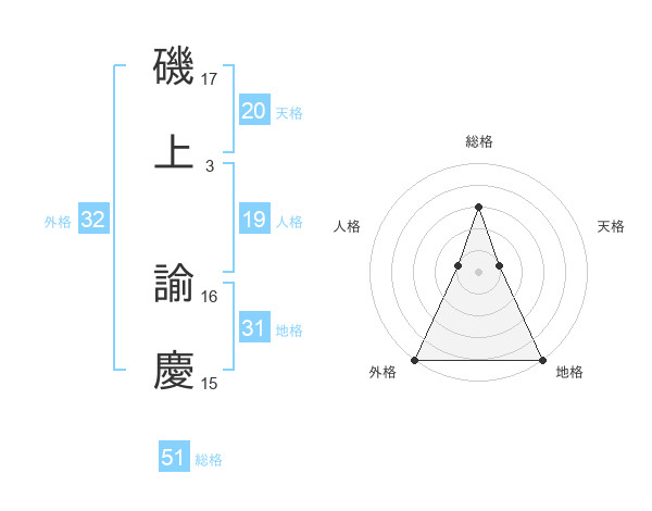 磯上 諭慶さんの総格は51画の3点!