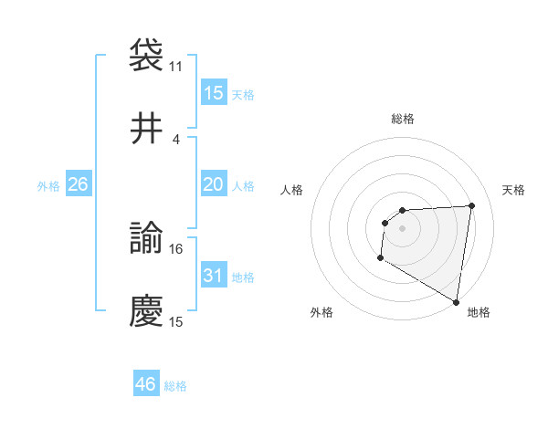 袋井 諭慶さんを姓名の画数から五運を鑑定