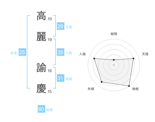 高麗 諭慶さんの総格は60画の1点!