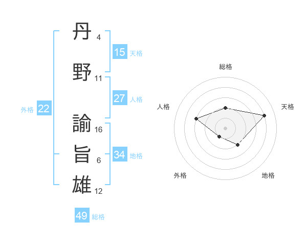 丹野 諭旨雄さんの総格は49画の2点!