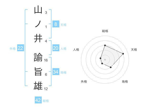 山ノ井 諭旨雄さんの天格は8画の4点!