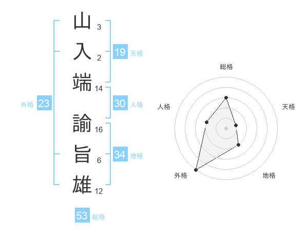 山入端 諭旨雄さんの総格は53画の3点!
