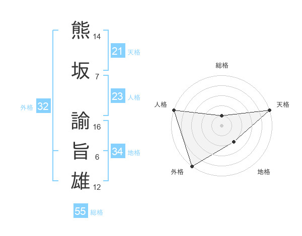熊坂 諭旨雄さんを姓名の画数から五運を鑑定