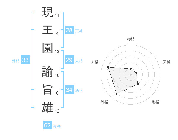 現王園 諭旨雄さんを姓名の画数から五運を鑑定