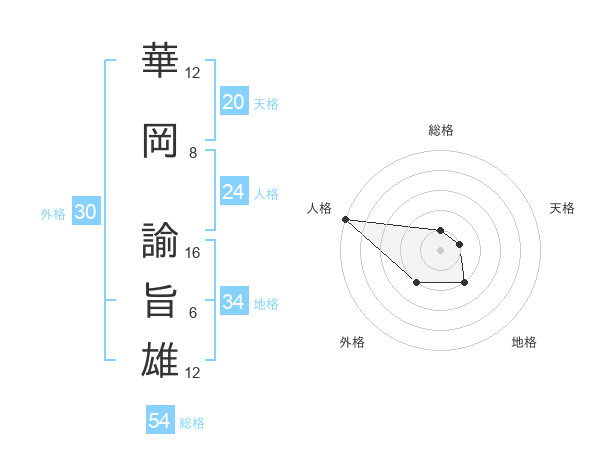 華岡 諭旨雄さんを姓名の画数から五運を鑑定