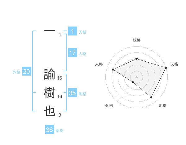 一 諭樹也さんの外格は20画の1点!