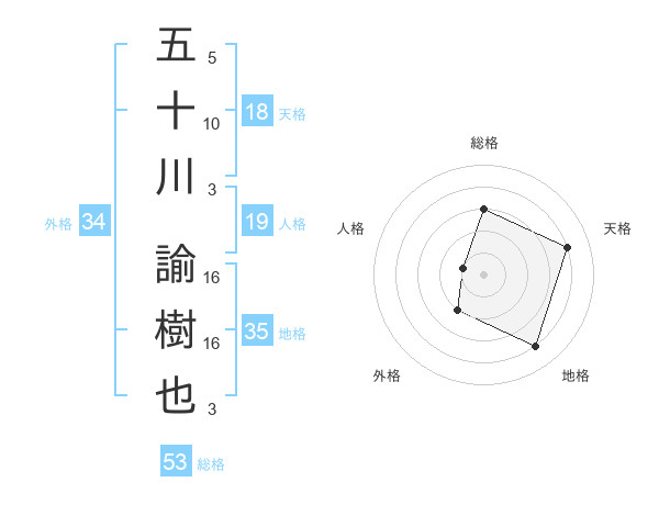 五十川 諭樹也さんを姓名の画数から五運を鑑定