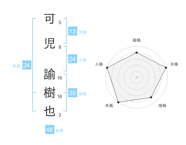 可児 諭樹也さんの総格は48画の4点!