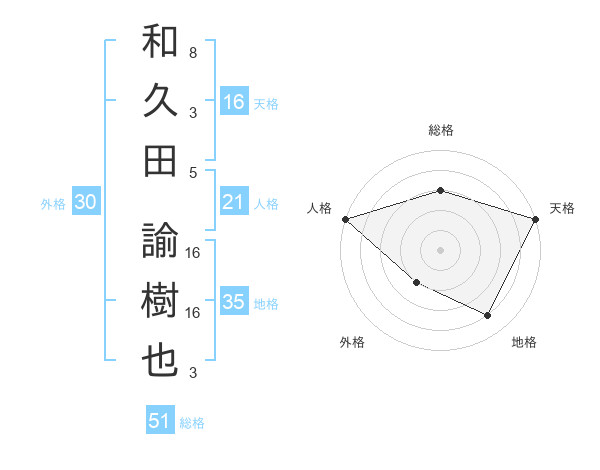 和久田 諭樹也さんを姓名の画数から五運を鑑定