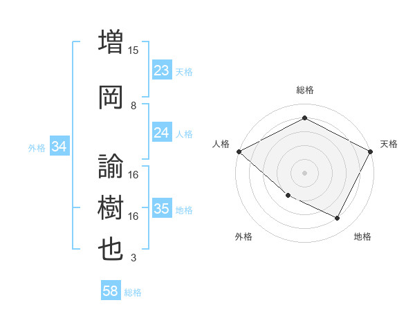 増岡 諭樹也さんの天格は23画の5点!