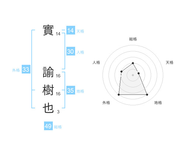 實 諭樹也さんの外格は33画の4点!