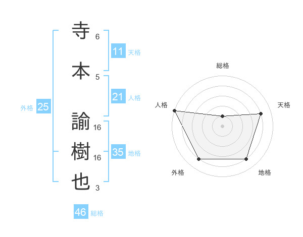 寺本 諭樹也さんを姓名の画数から五運を鑑定