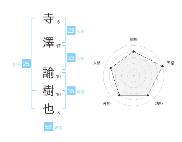 寺澤 諭樹也さんの天格は23画の5点!