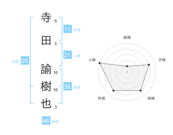 寺田 諭樹也さんの天格は11画の4点!